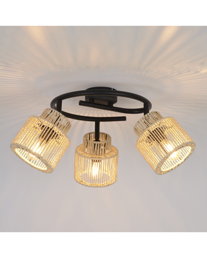 Ceiling lamp 3 spotlights 63cm metal and braided paper lampshade E14 40W