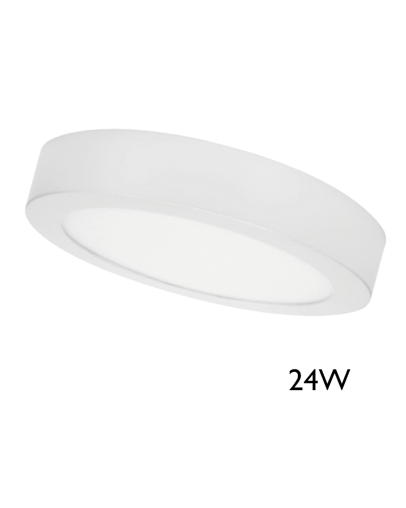 24W LED surface downlight with a diameter of 30 cm, white. PCB module made of aluminum to favor temperature dissipation. Internal polycarbonate plate to improve light reflection. Perimeter light. - Finish: white. - Measurements: diameter 300mm, height 39mm. - Light angle 120º. Immediate ignition. - Material: aluminum body, polystyrene diffuser. - Energy class: A+. Save on your electricity bill. - Long useful life (more than 35,000 hours).