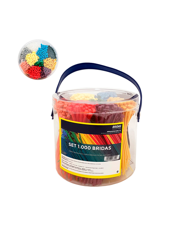 Set of 1,000 cable ties in various colors