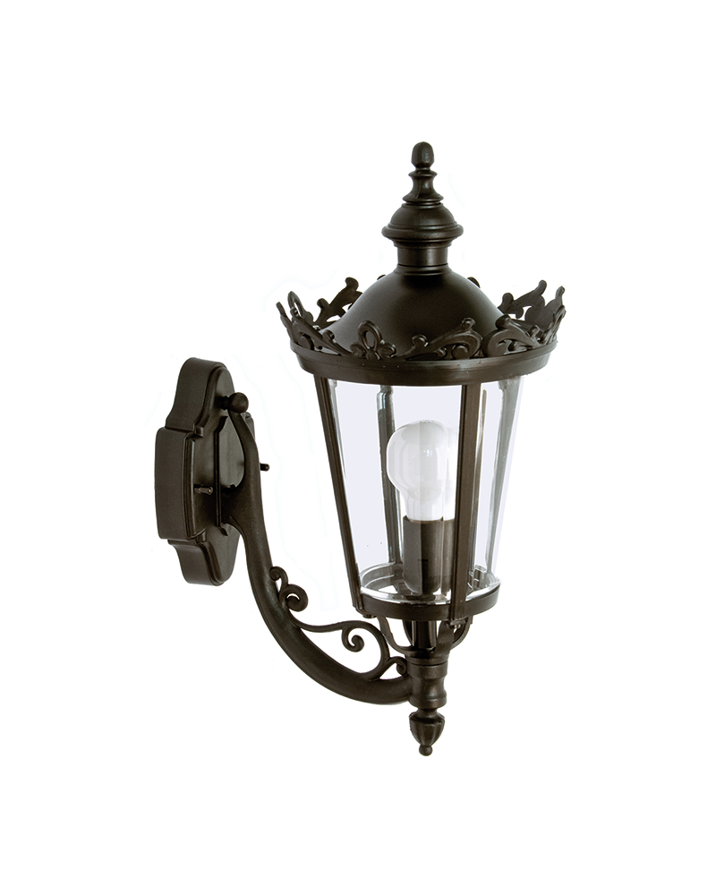 Outdoor wall light classic style IP44 for E27 screw bulb height 52cms, with head facing upwards. Available in black, white and rust brown.