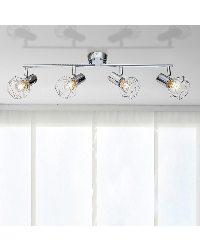 Industrial vintage ceiling strip 60cm with 4 oscillating spotlights chromed silver finish 4xE14 40W