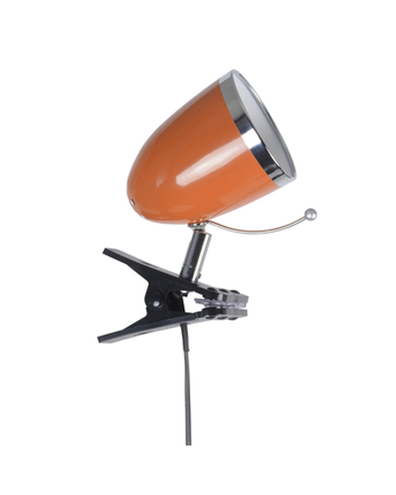 Foco articulado con pinza con una pantalla de metal disponible en varios acabados verde oscuro, amarillo, naranja, blanco, cromo, azul o negro. Abrazadera de plástico la cual permite su colocación en muebles u otros objetos, llevando la luz a donde tú quieras. Pinza robusta mantiene la luminaria firmemente en su lugar y a la vez no daña el material al que está fijada. Con interruptor facilitando el encendido y el apagado. Diferentes colores para dar un estilo muy chulo a cualquier espacio.