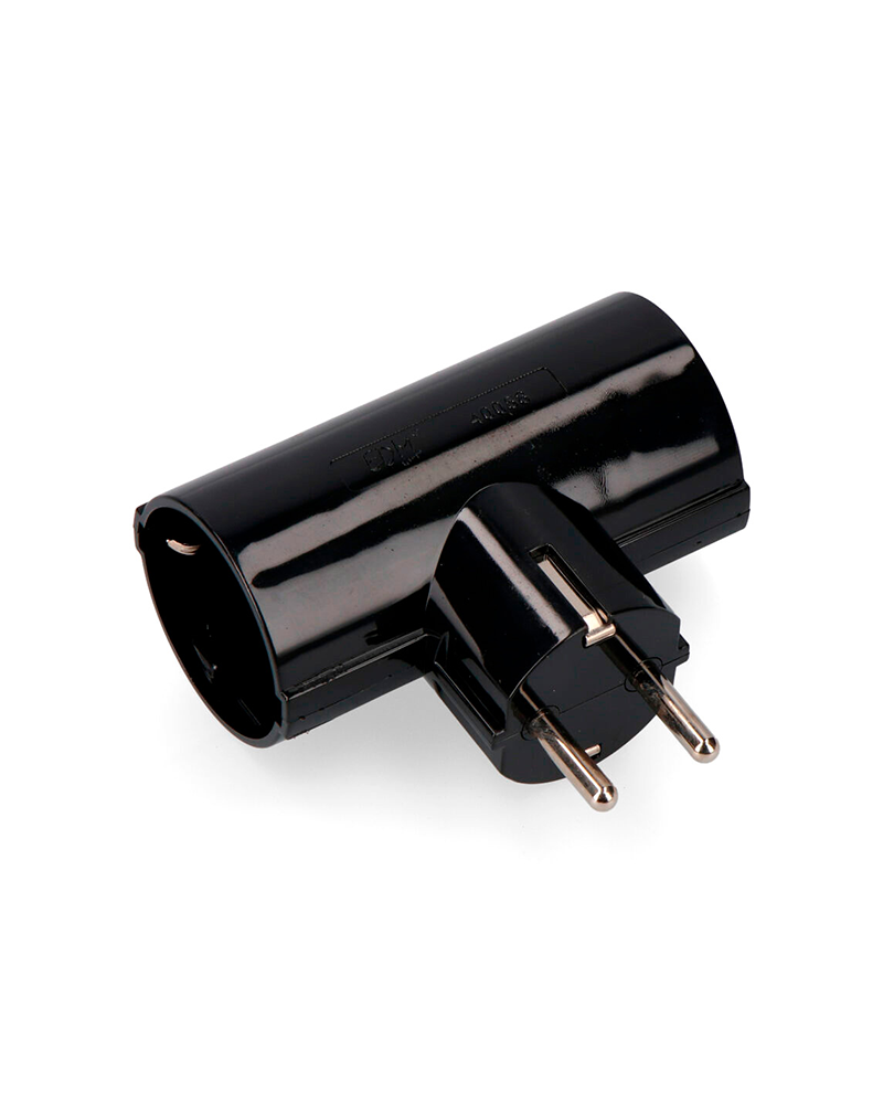 Clavija doble con baquelita T/TL 16A 250V disponible en color negro o blanco. Material: baquelita, que no es un material conductor de la electricidad, por eso aisla las terminales eléctricas.