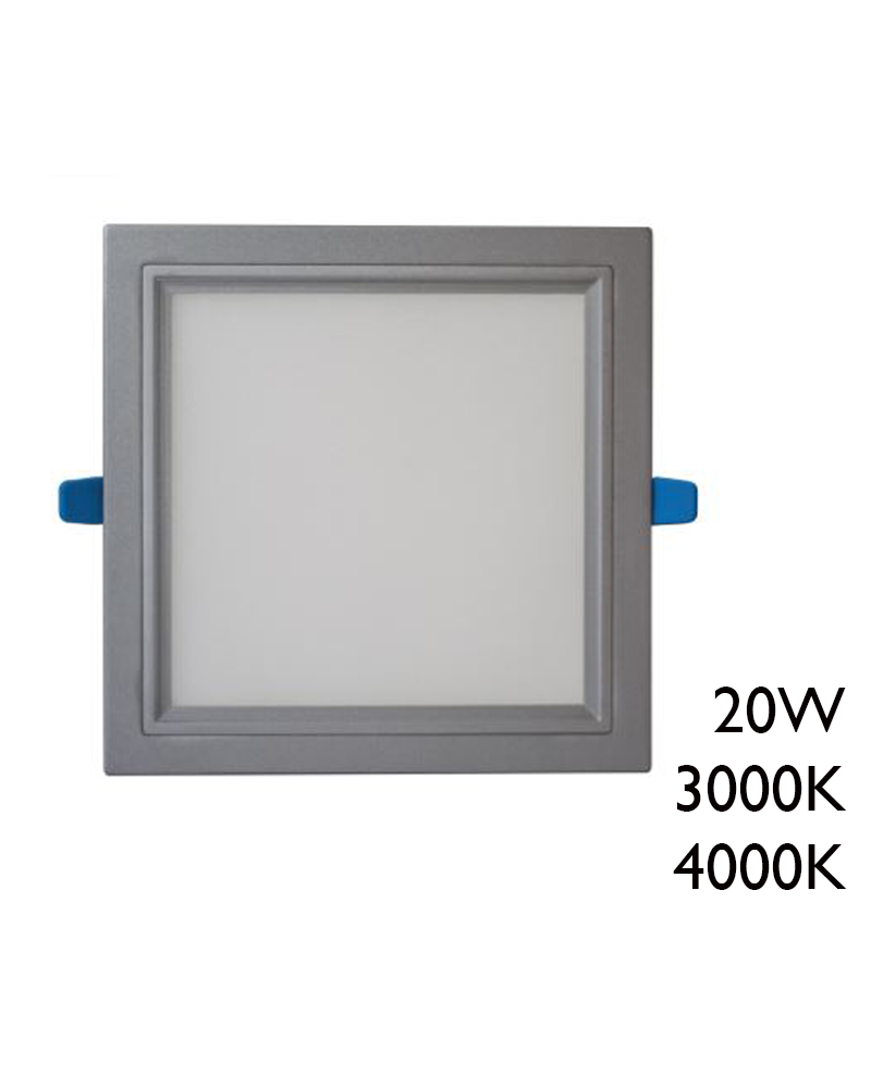 Downlight cuadrado marco gris LED 50.000h empotrable 20W de 22,5x22,5cm diver extraíble