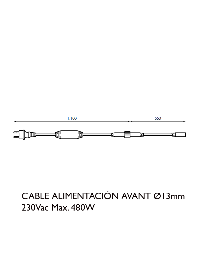 Cable alimentación 165cms 230V 480W para hilo LED