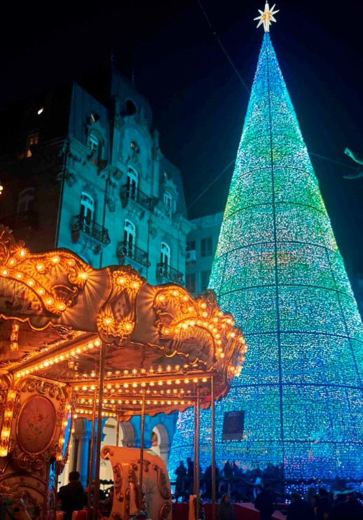 Repleto de una gran iluminación navideña como cortinas de luces, guirnaldas, figuras luminosas, y un largo etc, Vigo se sitúa como no de los sitios más representativos en Navidad. Se ubica en la Porta do Sol, donde el año pasado, así como anteriores, las autoridades han instalado un gigantesco árbol de Navidad. Como si esto fuera poco, para el 2020 instalaron una noria de 50 metros de altura compuesta por 250.000 luces.