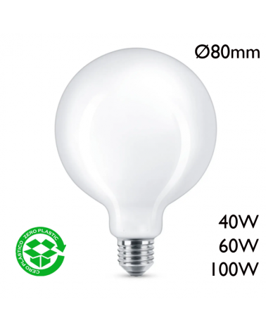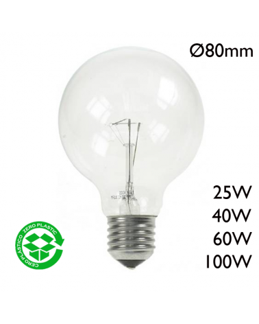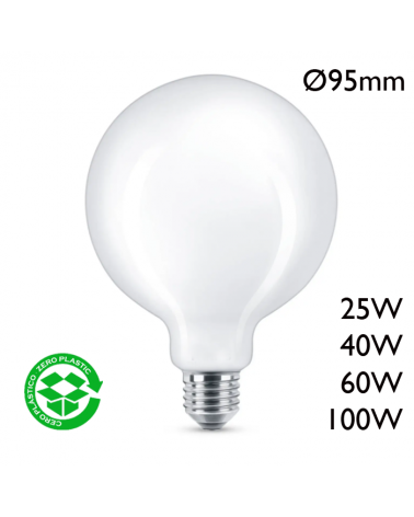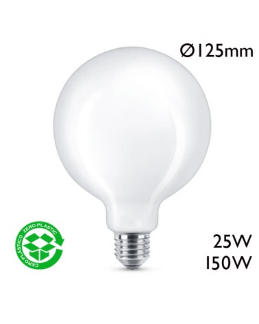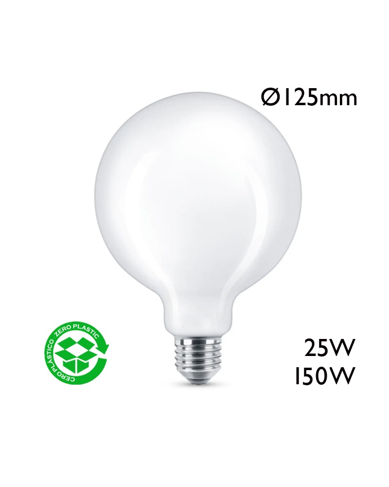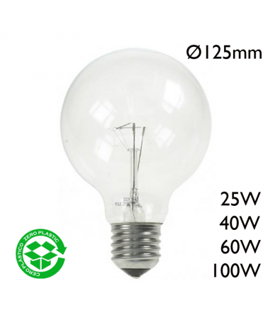 Globe-shaped incandescent lamp Ø125cm 230V socket E27 white glass. Available in different powers.