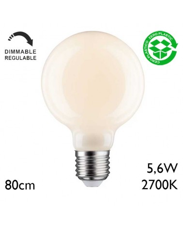 Globe-type LED lamp with a diameter of 120mm, 18W, E27 thread, 3000K warm light, 220º angle and A+ efficiency. Very bright: provides 1,400 Lumens. 20,000 hour lifespan.