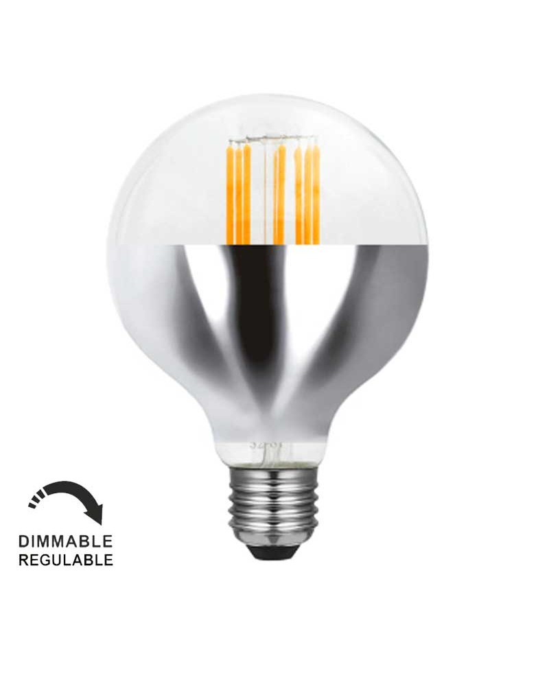 LED Globe bulb 95 mm. Dome Mirror Reflector LED filaments Dimmable E27 6W 2700K 510Lm.