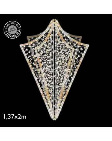 Ideal for decorating streets, squares, shopping centers, city councils, etc. - Power cable included. - Luminous figure measurements: length 180 cm, height 210 cm. Weight: 30 Kgs. - Bulb type: LED technology. - Decorated with tapestry. - Total consumption: only 90W. - IP65: Suitable for indoor and outdoor use. - Voltage: low voltage 24V.