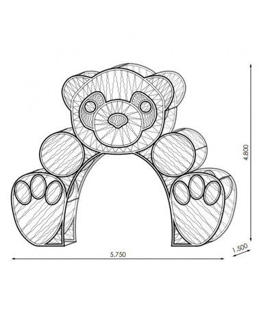 Portal 3D walkable giant bear figure measures 575x480x150 cms. Illuminated with cool white and warm white LEDs. With PVC tapestry. Being LED technology it only consumes 750W. Suitable for indoor and outdoor use, IP65.