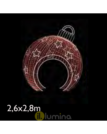 Giant walkable 3D ball measures 260x280 cm. Illuminated with red flashing LEDs combined with cool white or warm white combined with cool white. Being LED technology it only consumes 210W. Suitable for indoor and outdoor use.