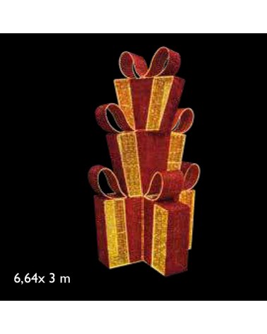 Christmas figure with warm light, white and red gifts in a tower, 6.64 meters, with tapestry suitable for outdoor use, 24V