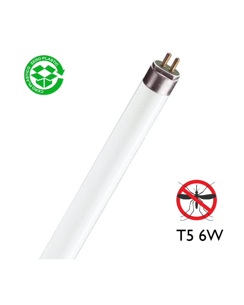 BL 6W G5 actinic black light insect killer fluorescent tube. Special tube for anti-mosquito lamps of 21.20cm with a 6W G5 socket and a 16mm T5 socket. Efficiency A, opal or white finish.