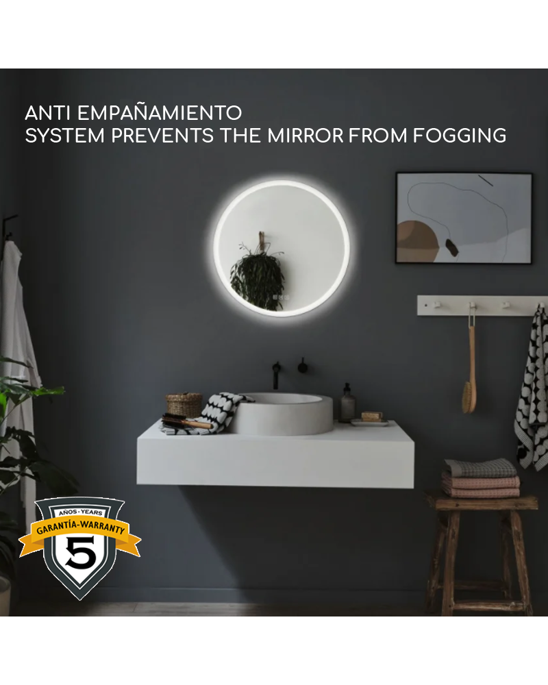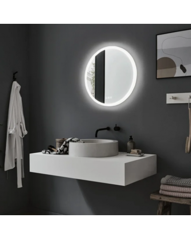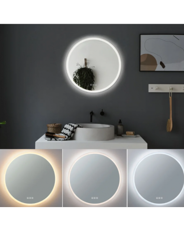 Round LED mirror with white frame 60 cm LED touch regulation. Lighting plays an important role in our mirrors. Being LED lighting, you can enjoy natural light and reduced energy use. Wide selection of LED color allows you to have the lighting to your liking. It has a heating mode to prevent fogging, guaranteeing clear vision even in humid conditions.