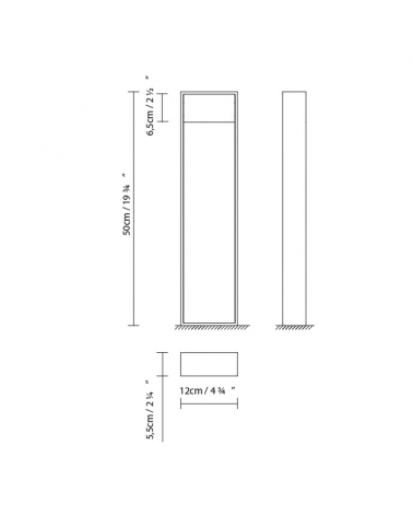 Rectangular outdoor beacon with indirect light LED 4.5W, light temperature of 3000K. With IP55 protection. 316L stainless steel finish combined with black marble reflector, 50 cm high.