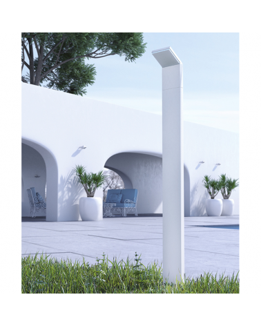 Outdoor LED 9W bollard light with a light temperature of 3000K or 4000K. Made of aluminum in white finish, 110cm high. Provides greater security in outdoor areas, driveways, sidewalks, paths, etc. IP54 protection protected for outdoors.