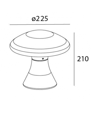 Original outdoor lawn lamp in the shape of a 21cm high mushroom. Made of stone grey finished cement. Integrated 6.5W LED with 3000K warm light, creating indirect light on the ground. Perfect for decorating and lighting gardens and terraces. With IP65 protection.