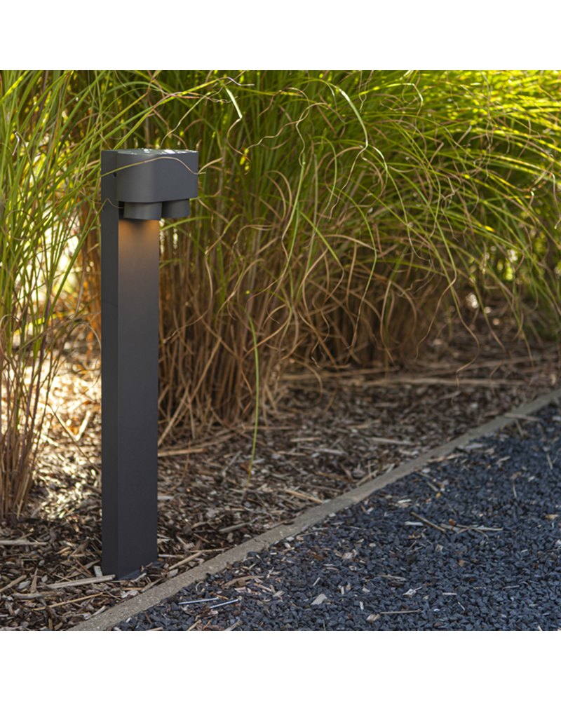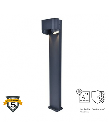 The LED beacon made of aluminum with a dark grey finish, designed to provide effective lighting in outdoor spaces. With a height of 75cm, it is made of high quality aluminum to guarantee its durability and resistance to adverse weather conditions.