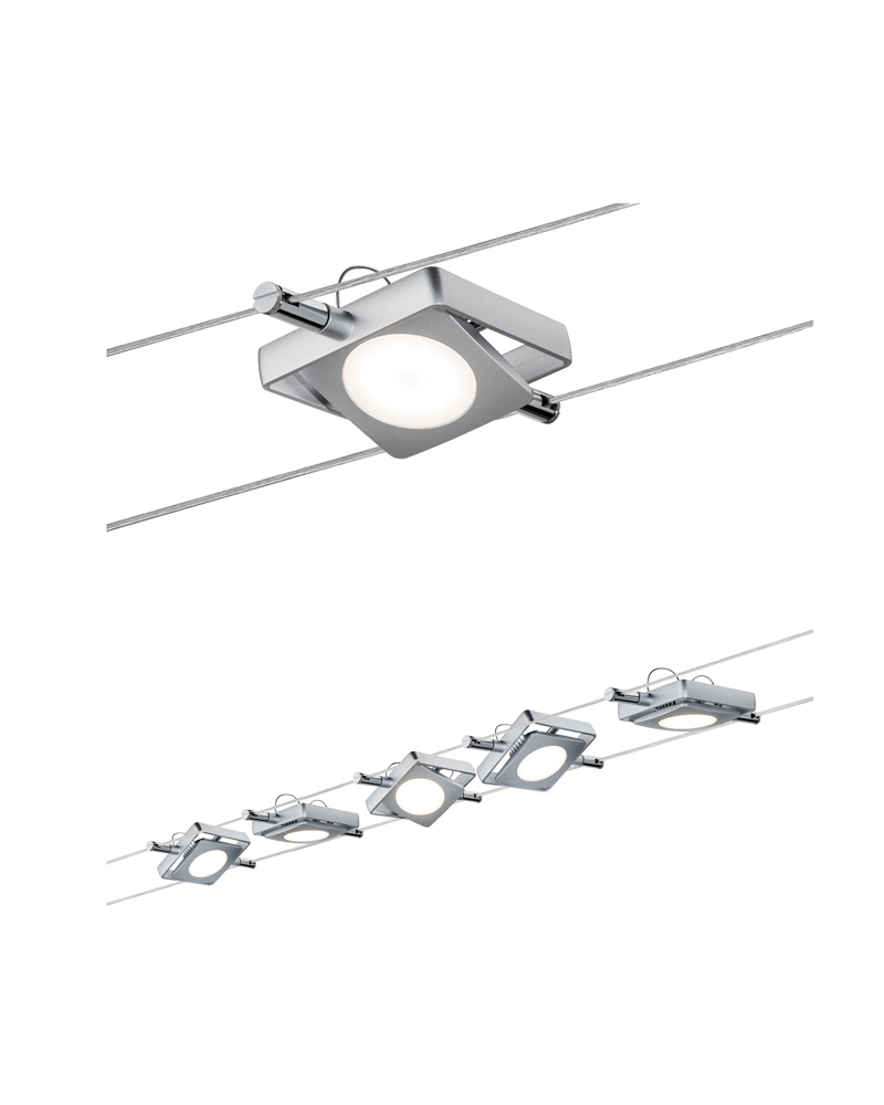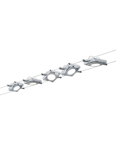 Square frame matt chrome cable system LED 5x4W 230 / 12V DC