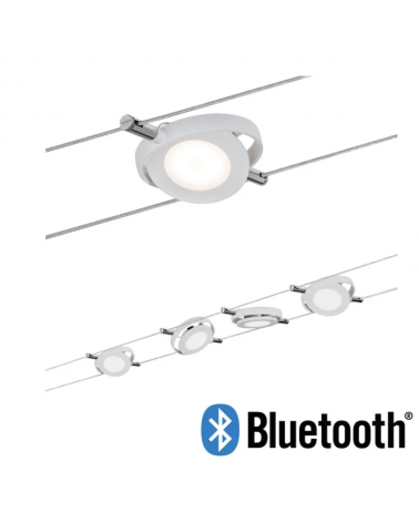 Support for cable system with chromed opal glass shade max 10 W GU5.3. Bulbs not included.
