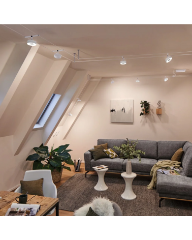 Whether straight, inclined or at an angle, the cable systems adapt to every room. Available in white, nickel or black.