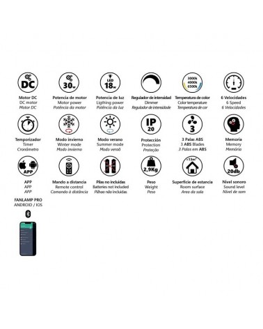 Available in white, sand white and turquoise, this ceiling fan not only stands out for its functionality but also for its versatile aesthetics that adapt to various decoration styles. In addition, it has an independent 3000K nightlight, providing soft night lighting that adds a touch of security and comfort. The fan also includes a dimmer and modes for the winter and summer seasons, allowing you to adapt the environment according to climatic needs. With 6 speeds, timer and settings memory, this fan offers complete control over your environment. With a low sound level of 20db. It has the convenience of controlling all its functions through a mobile application, providing a modern and intuitive experience.