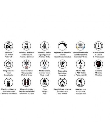This fan gives you the possibility of adjusting the light temperature, you can choose between three different shades: warm (3000K) , neutral (4000K) and white (6000K), allowing you to adapt the lighting to your needs and preferences. The remote control allows you to manage the light intensity and fan speed easily, offering a cozy and comfortable environment.