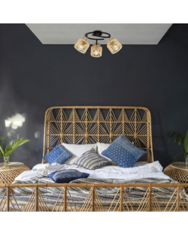 Ceiling lamp 3 spotlights 63cm metal and braided paper lampshade E14 40W