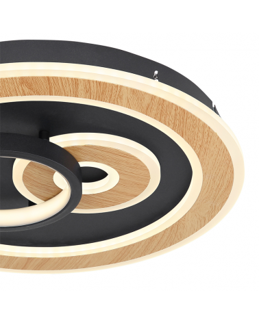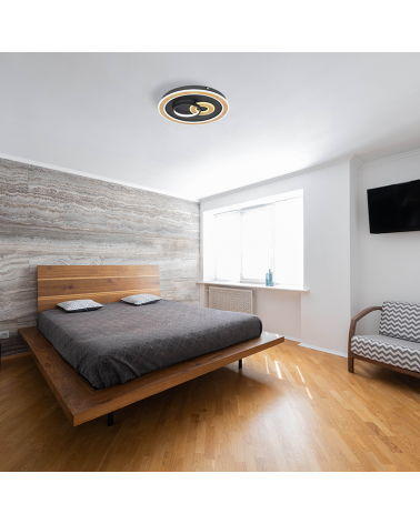 In addition, this ceiling lamp has a height of 6.5cm and is made of metal and acrylic materials. Its finish has three colors: wood look, opal and black, so you will surely find one that suits your needs. With a power consumption of 40W and 1650 lumens, this lamp is efficient and powerful at the same time. The infrared remote control allows you to easily adjust the intensity of the light, and with a life expectancy of 20,000 hours, making it a long-lasting and profitable investment, you won't have to worry about replacing it anytime soon. In summary, this round ceiling lamp is an excellent option for those looking for quality lighting and a modern design.