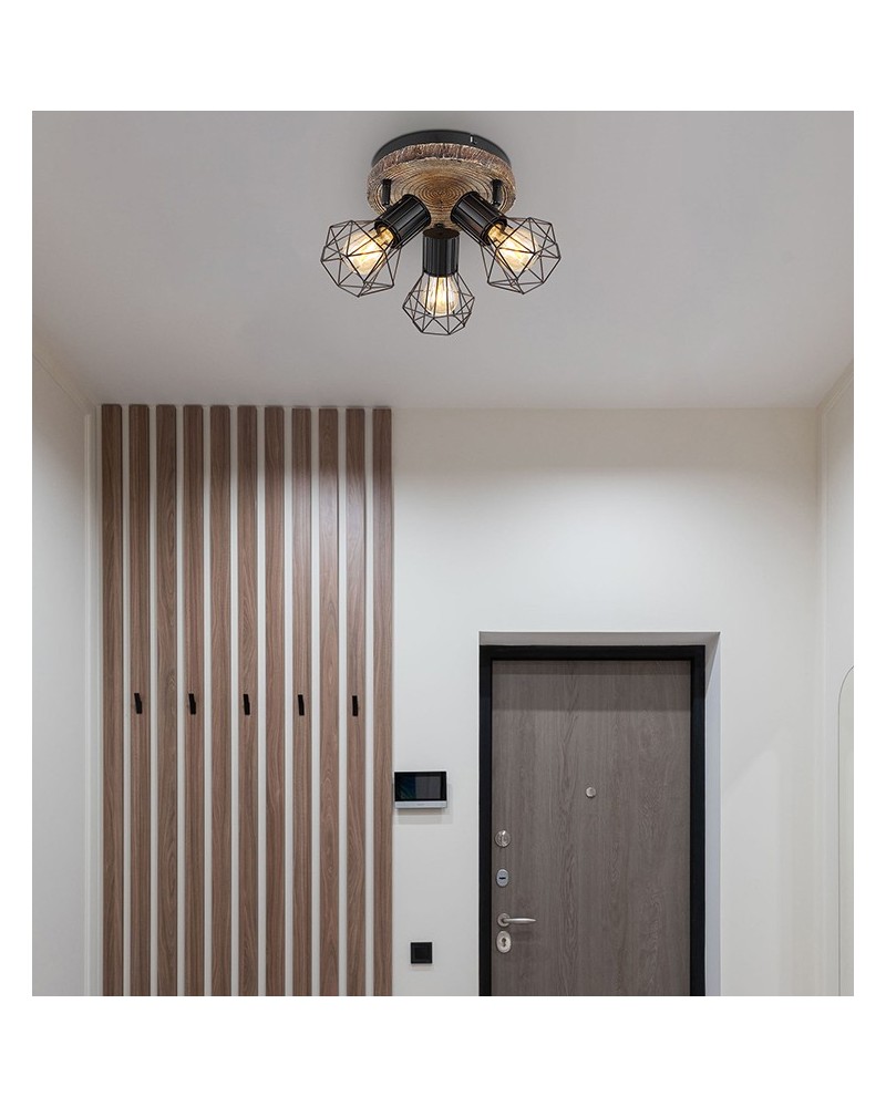 This vintage industrial ceiling light is the perfect choice for those who are looking for a high-quality ceiling light that will not only illuminate but also decorate their home. If you are looking for a vintage or industrial ceiling light, look no further. This ceiling light is the perfect choice for any lover of vintage-style decoration. The industrial ceiling lamp in black and imitation wood trunk has an industrial design that adapts to any space, from a living room to a bedroom. With its vintage style and industrial touch, this ceiling light is perfect for any modern home that wants to add a touch of industrial style.