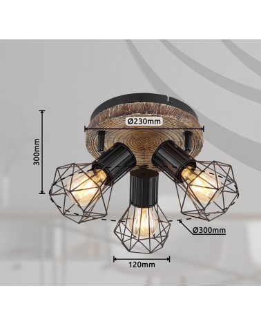 This industrial vintage style circular ceiling light is a perfect combination of industrial style and functionality. With its unique design, this vintage ceiling light will be a perfect addition to any decor. With three oscillating spotlights, each with its E27 40W leather lamp holder, on a plastic support that imitates wood. In this way it is easier to clean and has less maintenance.