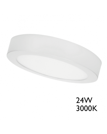 24W LED surface downlight with a diameter of 30 cm, white. PCB module made of aluminum to favor temperature dissipation. Internal polycarbonate plate to improve light reflection. Perimeter light. - Finish: white. - Measurements: diameter 300mm, height 39mm. - Light angle 120º. Immediate ignition. - Material: aluminum body, polystyrene diffuser. - Energy class: A+. Save on your electricity bill. - Long useful life (more than 35,000 hours).