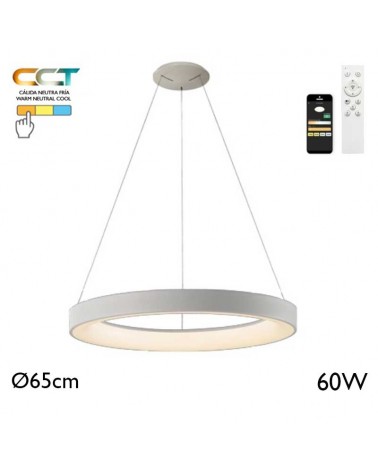 Experience beauty and functionality at its finest with our circular design ceiling lamp with a diameter of 90cm. With an impressive 75W integrated LED. Thanks to the remote control, you can adjust the color temperature according to your preferences. From a warm and comforting temperature of 2700K, to a day light of 5000K that floods the environment with clarity and vitality.