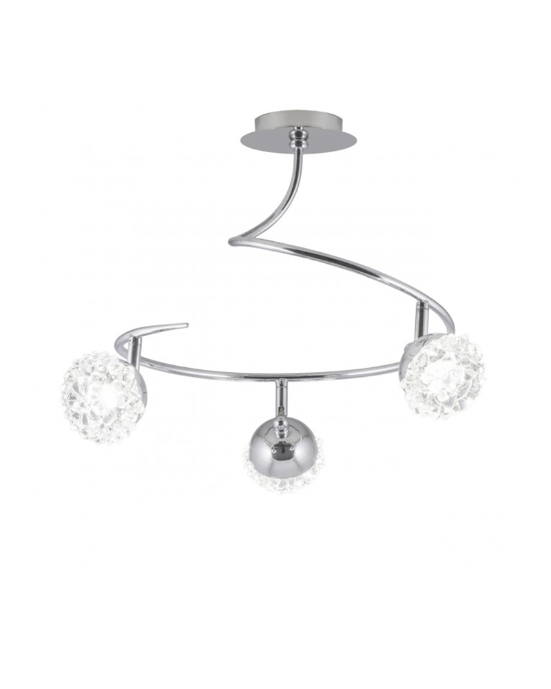 This modern-style ceiling fixture with an extravagant design features three lights, perfect for elegantly decorated bedrooms and living rooms