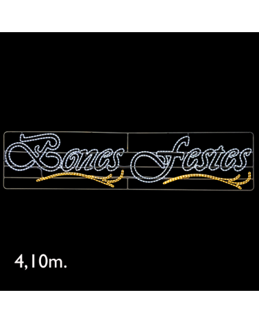 BONES FESTES LED sign 2.68 meters long illuminated with LEDs available in warm or cool white. Being LED technology, it only consumes 66W. Suitable for outdoor use, IP65 & IP44 Plug. Made in Spain.
