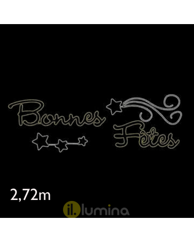 Ideal for facades, decorating streets, lampposts, balconies, decorating the ends of garlands, etc. - Power cable included. - Luminous figure measurements: length 268cm, height 47.5cm. Weight: 4 Kgs. - Bulb type: LED technology. - Total consumption: only 66W. - IP65: Suitable for outdoor use. - Voltage: direct to network 230V.