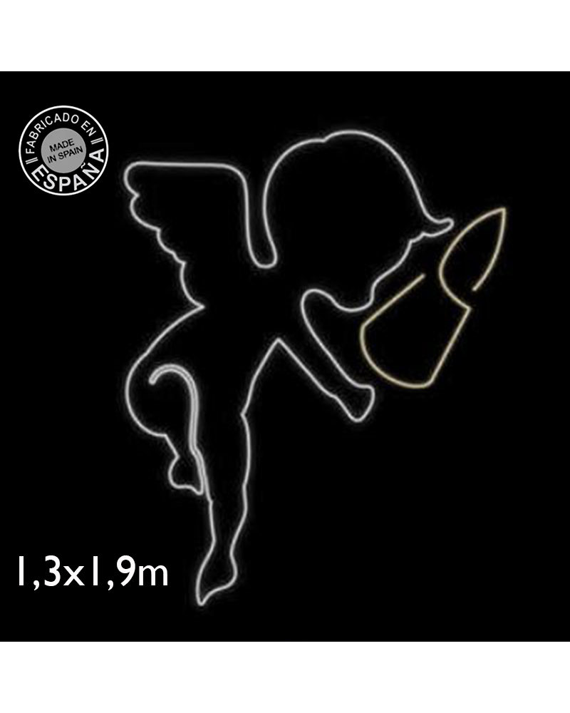 Christmas luminous figure made with a luminous tube in the shape of an angel with a candle, illuminated in cool and warm light. Size: 133x190 cm and 99W. Suitable for outdoor use.