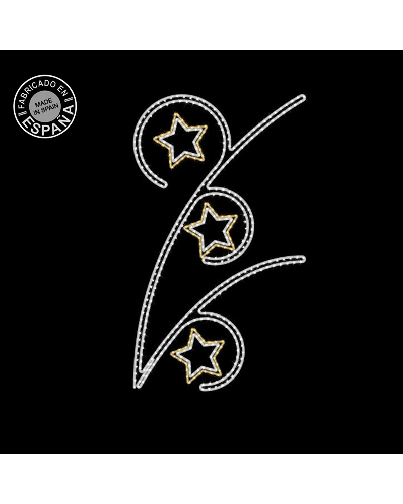 Decorative figure of Christmas lighting with stars, suitable for facades, lampposts and streets. With LED light with warm light combined with cool light. Being LED technology, it only consumes 64.5W. Suitable for outdoor use, IP65 & IP44 Plug. Cable included. Made in Spain.