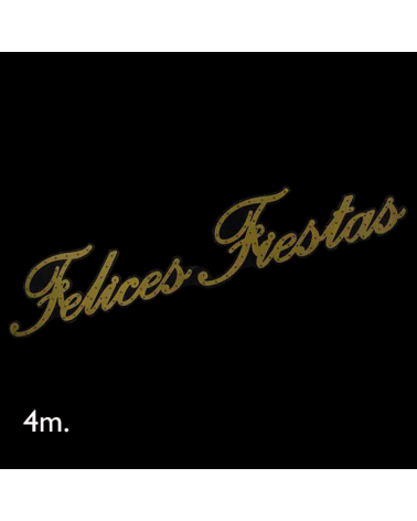 "FELIZ NAVIDAD" LED lights poster with fir trees illuminated with cool white LEDs and fir trees with brown upholstery. It measures 4.28 meters long. Being LED technology, it only consumes 132W. for outdoor use, IP65 & IP44 Plug.