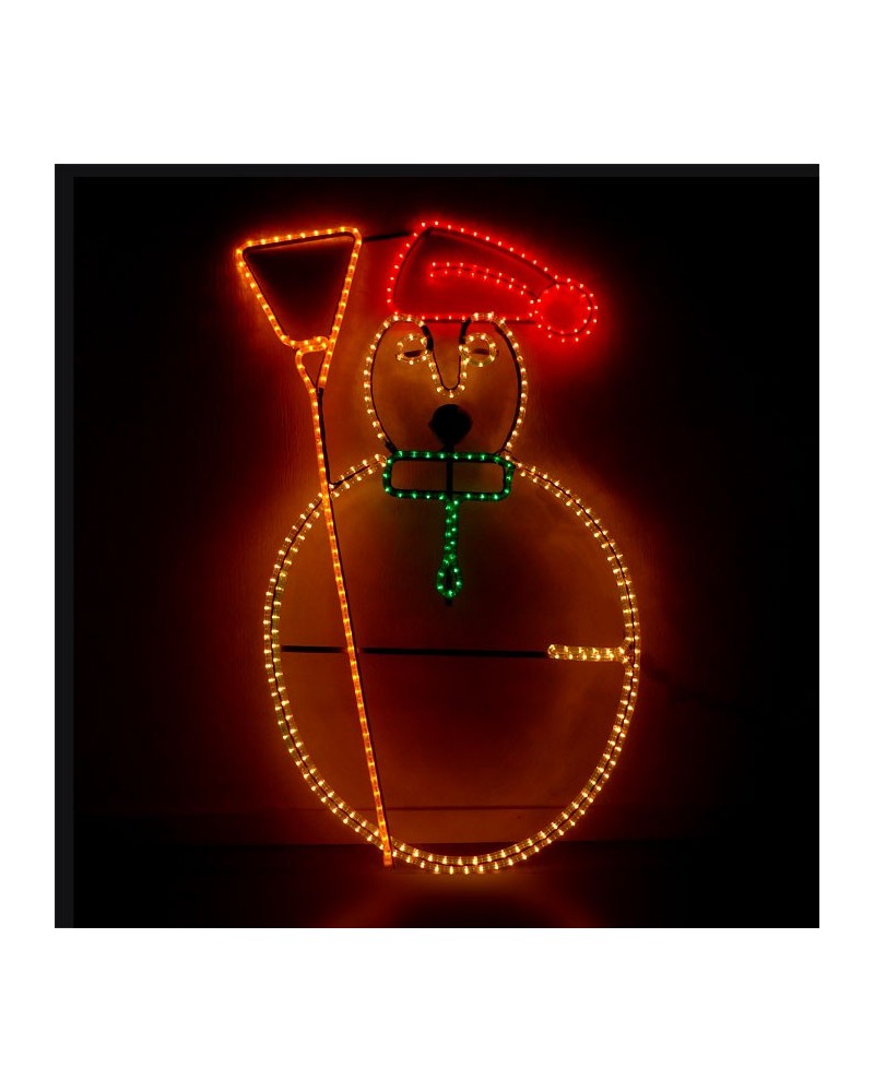 Christmas figure made with a luminous tube in the shape of a snowman, illuminated in various colors (red, blue, snow white light and yellow light). for outdoor use. Ideal for decorating exterior facades, streets, trees.