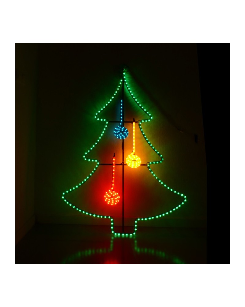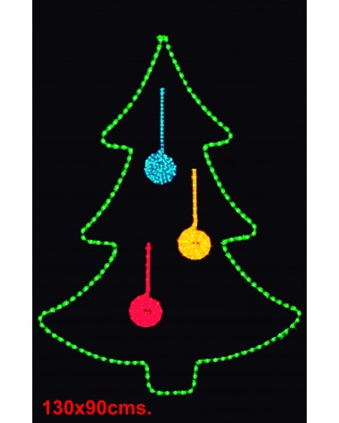 Christmas luminous figure made with a luminous tube in the shape of a Christmas Fir Tree with decorations, illuminated in various colors (red, blue, green and yellow light). Size: 130x90 cm. for outdoor use.