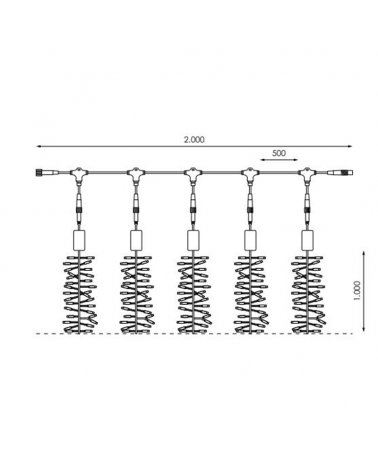 Measurements: length of 2 meters; height 1 meter. Lamps: composed of 250 LED lights. Total consumption: only 5.5W Junctional: it can be coupled up to a maximum of 15 curtains, forming a total of 30 meters with a single plug. Rubber cable Suitable for outdoor use, IP65. You need a 1.50 meter power cable, not included. See reference 200-3-1491 (white cable).