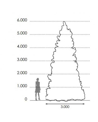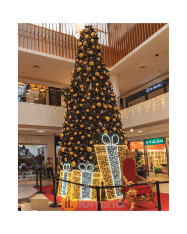 Hurry, there are very few units left! Green Christmas tree. Measurements: height 6 meters, diameter base 3 meters. Inner post structure and safety fixing base with steel cable. It can be decorated and illuminated with our linkable LED string lights, LED curtain lightss, LED waterfalls, Christmas balls, etc. It is served disassembled, packed in 4 boxes. Only the tree is served, without decoration.
