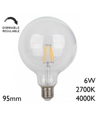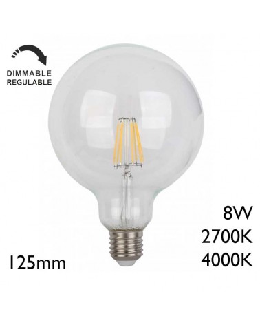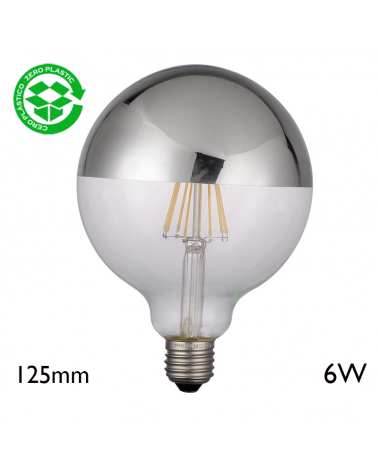 Globe Bulb 125 mm Silver Mirror Dome LED filaments E27 6W 2700K 750Lm.