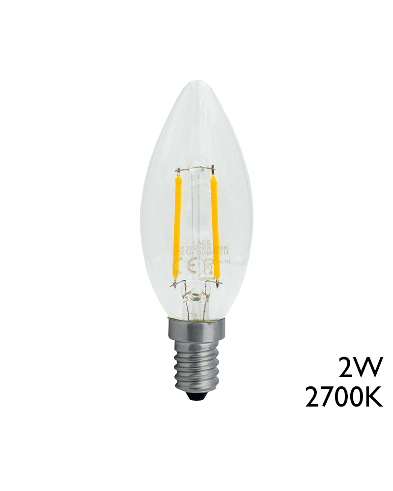 LED vintage Clear Candle Bulb 35mm. LED filaments 2W E14 2200K 230 Lm.