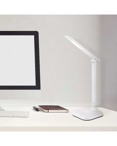 Original and versatile 7W LED flexo 56.5cm high, made of plastic and finished in white. Adjustable by contact. Available in color temperature 4000-5000-6000K. Suitable for both a desk and a reading lamp on a bedside table. It can be moved with light arms. It has a touch switch to turn it on and off.