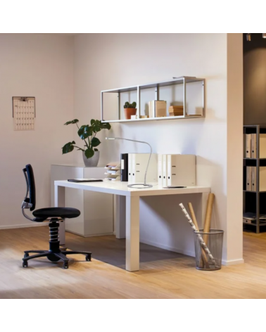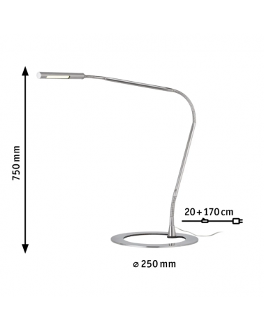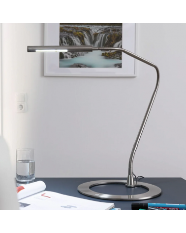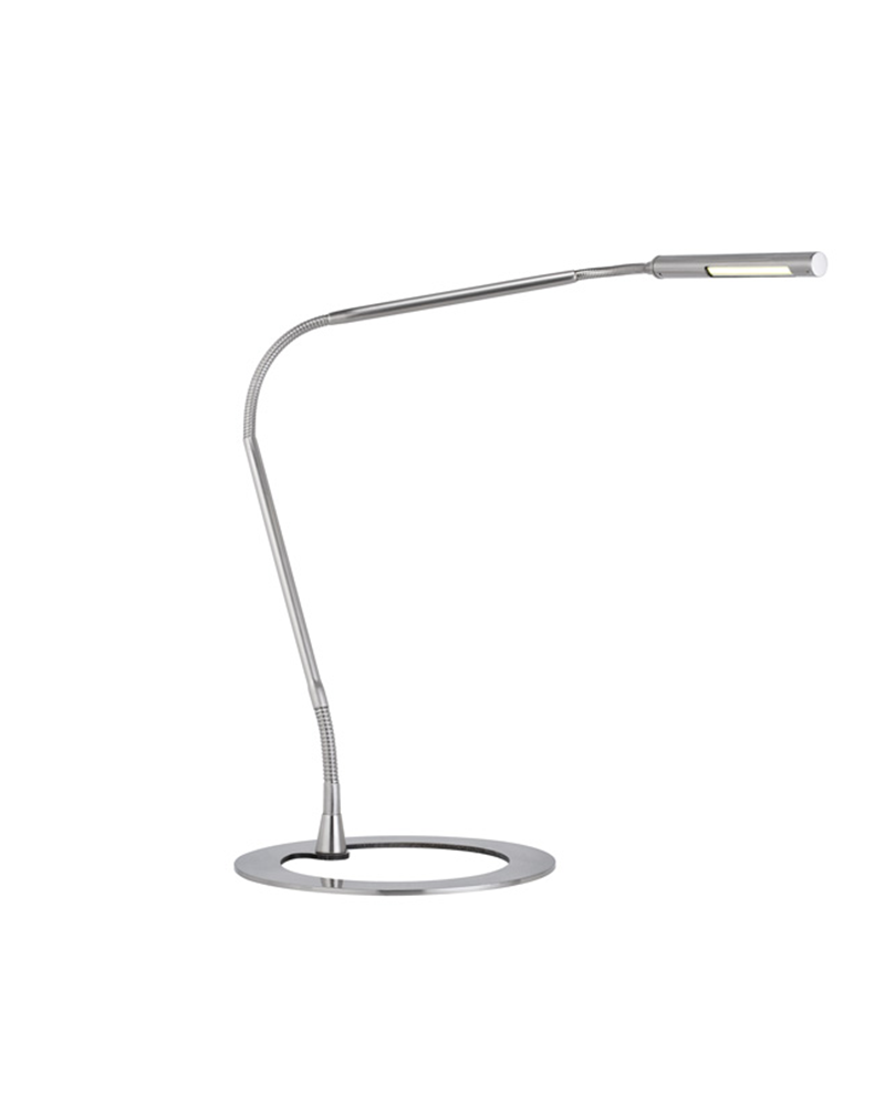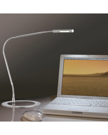 Modern and elegant flexo ideal for offices or study places decorated with modernity, versatile style. 3W LED 75cm high, made of metal finished in chrome. With adjustable flexible arm. It has a cable switch to turn it on and off.