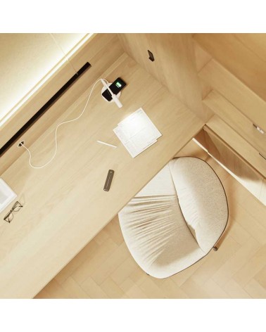 Equipped with 5W LED technology, this lamp emits a warm light of 175 lumens, with a color temperature of 2700K, creating a cozy and pleasant atmosphere in any environment. Its 30º light beam allows focused and precise lighting. It incorporates wireless charging for mobile devices, eliminating the need for cables and adapters, and providing a convenient and hassle-free charging experience.