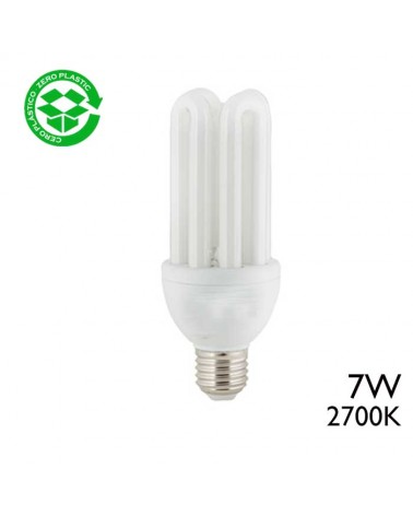 Low consumption E27 screw lamp. Consumes 7W. Warm light 2700K. Triple U-shaped tube. Long lifespan 8000 hours. LAST UNITS